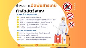 หน้าแรก » ข่าวสาร/กิจกรรม » ข่าวกิจกรรม » กำหนดการฉีดพ่นสารเคมี กำจัดสัตว์พาหะ ประจำเดือนมกราคม 2569