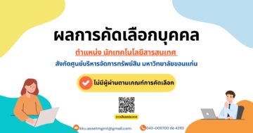 ผลการคัดเลือกบุคคลเข้าปฏิบัติงานเป็นพนักงานวิสาหกิจ ตำแหน่งนักเทคโนโลยีสารสนเทศ จำนวน 1 อัตรา สังกัดศูนย์บริหารจัดการทรัพย์สิน มหาวิทยาลัยขอนแก่น