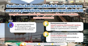 รับสมัครคัดเลือกโครงการให้สิทธิบริการทำความสะอาดภาชนะและอุปกรณ์รับประทานอาหารด้วยเครื่องอัตโนมัติของศูนย์อาหารและบริการที่อยู่ใต้การดูแลของศูนย์บริหารจัดการทรัพย์สิน มหาวิทยาลัยขอนแก่น