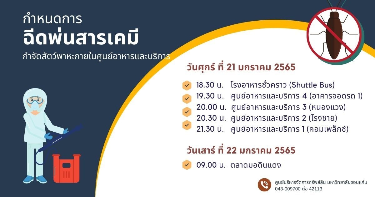 ASSET NEWS กำหนดการฉีดพ่นสารเคมี กำจัดสัตว์พาหะภายในศูนย์อาหารและบริการ 1-4 และตลาดมอดินแดง “ประจำเดือน พฤษภาคม 2565”